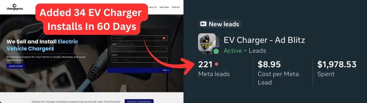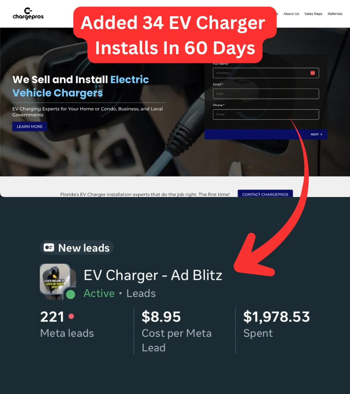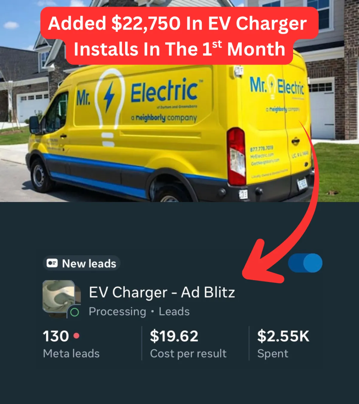 We run battle-tested ads that have already generated thousands of installs for services like EV chargers, backup generators, panel upgrades, and solar with battery storage.
