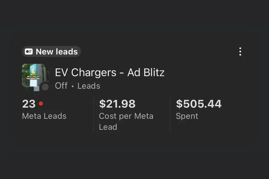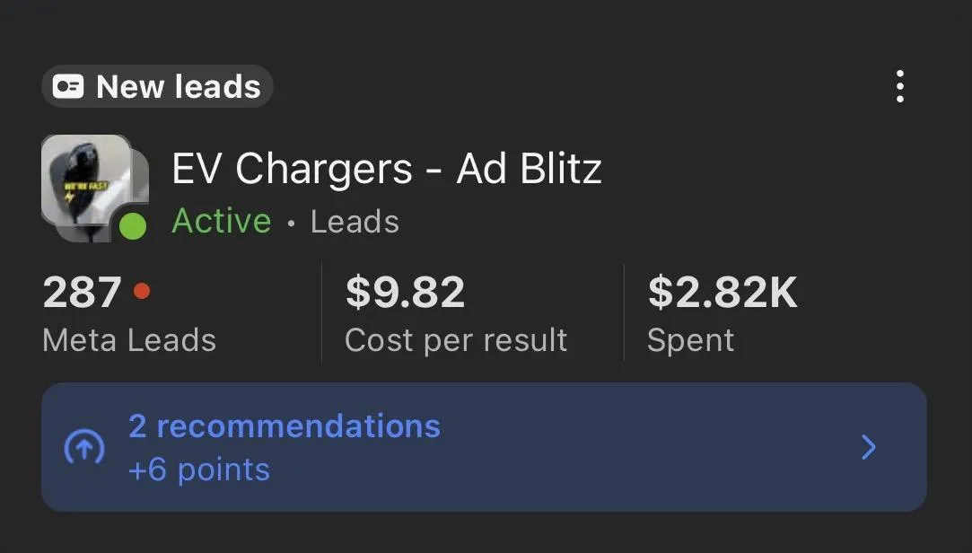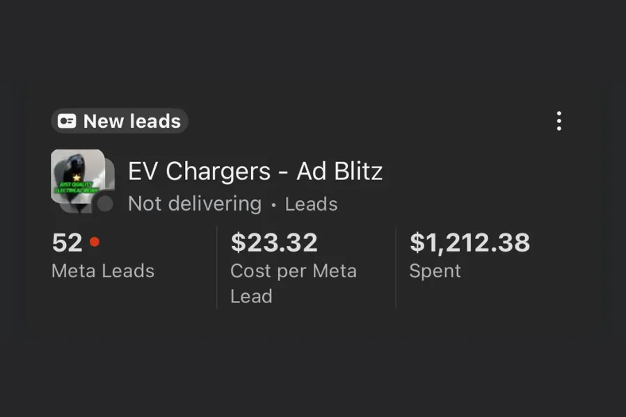 We run battle-tested ads that have already generated thousands of installs for services like EV chargers, backup generators, panel upgrades, and solar with battery storage.