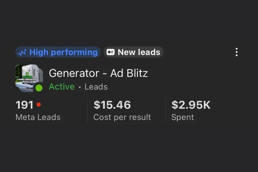 Battle-tested ads that deliver in a steady flow of EV charger and generator jobs—fast.